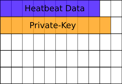 Schematische Darstellung des Speicherbereichs in Blöcken von OpenSSL, mit Private-Key und Heartbeat Daten[/caption]